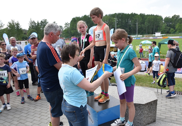Rückblickend gab es schon ganz anderes Wetter mit Dauerregen, welcher kurzfristig zu Streckenänderungen führte bis hin zu kalten Temperaturen. Davon wurden dieses Jahr die Sportler verschont, auch wenn es in der Mittagszeit im Wildsbergstadion und auf der Bergstraße schon ganz schön heiß war. “Wir haben zusätzliche Trinkstellen aufgebaut und es gab keinerlei Zwischenfälle und Beschwerden” stellte Sten Reichel vom Organisationsteam der Leichtathletikabteilung des TSV 1872 zufrieden nach Zielschluß fest. “Mit der Resonanz sind wir zufrieden, wenngleich wir schon über 300 Sportler am Start hatten. Es gibt halt viele Veranstaltungen”. Glücklich waren die Veranstalter auch mit den Ergebnissen, denn mit fünf Siegern stellte der Verein den Löwenanteil der Gewinner und mit Claudia Schönherr auch die Gesamtsiegerin bei den Damen über 9,7 km. “Obwohl ich dieses Jahr etwas langsamer war als 2016, lief es sehr gut. Mein kleiner Sohn Tim, der unbedingt mit aufs Siegerpodest wollte, nimmt mich schon in Anspruch, so dass die Zeit zum Trainieren knapper wird. Ich freue mich immer wieder über die schönen Preise” meinte sie glücksstrahlend nach dem Ziel, denn neben dem Gesamtsieg gewann sie auch den Bergsprint. Das gleiche Kunststück gelang Stefan Seidel von der SG Adelsberg bei den Herren. “Ich komme gern nach Pobershau, die Organisation klappt bestens, die Strecken sind anspruchsvoll und Bergläufe liegen mir. Nächstes Jahr möchte ich wie Claudia den Hattrick schaffen und zum dritten mal beide Wertungen gewinnen” war sein Resümee nach der Siegerehrung. Glücklich war auch Gunter Reichel vom Heimatverein TSV 1872 Pobershau, weil neben seinem Altersklassensieg (M65) seine beiden Enkeltöchter Matilda (WKU6) und Almut (WKU10) siegten, ebenso Matthäus Hengst (MKU10). Geehrt wurde auch Dr. Harald Kraut, mit stolzen 88 Jahren ältester Teilnehmer und 86 Jahre älter als die jüngsten Starter. Die Kinder waren wie immer mit Feuereifer dabei, beim Start kaum zu bremsen und stolz, dass alle zur Siegerehrung aufgerufen wurden. Aus der Region siegten in ihren Altersklassen Dauerbrenner Sharlynn Gärtner (WKU10), ihr Bruder Cedric (MJU16) vom ATSV Gebirge/Gelobtland und Leonie Prezewowski (WJU14) von Pulsschlag Neuhausen sowie Kati Pflugbeil vom TSV Olbernhau im Jedermannslauf. Die Sieger kamen aus fast 20 Vereinen und weit mehr als 40 Vereine, von LG Frohburg über SSV Kamenz bis USV Jena zeigen, dass der Pobershauer Berglauf bekannt ist und angenommen wird. Abschließend noch ein große Dankeschön an alle fleißigen Helfer, Sponsoren und die Stadtverwaltung für die Unterstützung.